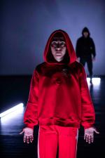 La peur habite ce conte chorégraphique sans parole pour deux protagonistes des temps modernes. Elle, capuche rouge, féminine et naïve. Lui, capuche noire, effrayant et fascinant. Leurs corps transmettent des émotions fortes, leurs bouches soufflent, rient, halètent.